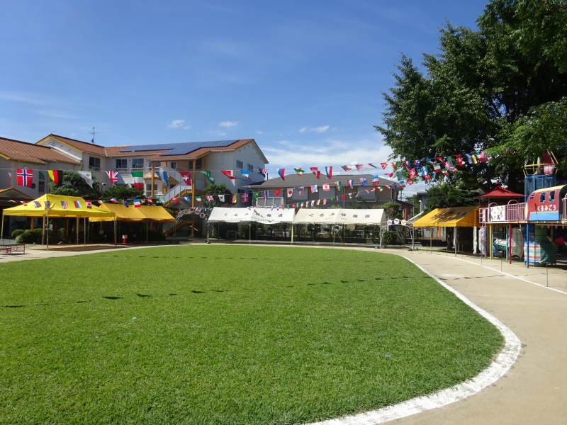 しかし、空いっぱいの青空と白い雲。 園庭の万国旗が優雅に泳いでおり、何だかとても心地良い一日でもあります。
