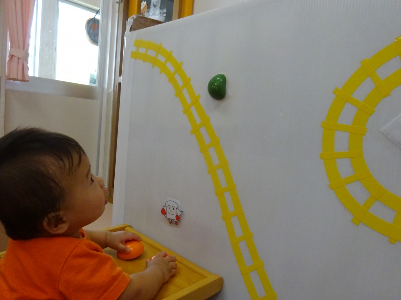 0歳児は、今日も優しい先生たちに囲まれながら、夢の世界へ。 1歳児は、オモチャ遊びに夢中です。 2歳児・満3歳児も含め、くるみっこたちが、開閉会式の練習を頑張っていました。