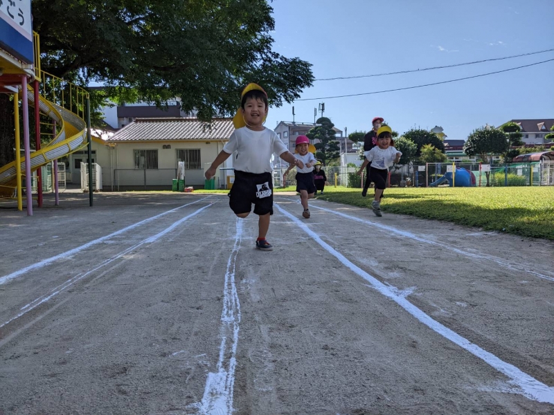 5歳児が、『徒走練習』をしていました。 いつもと違うお友だちと勝負する場面もありました。 ひとり一人が、目の前のことに楽しく・集中している姿がありました。
