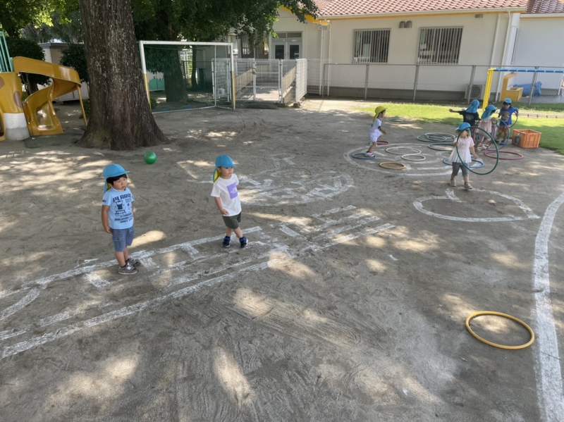 朝から、園庭で遊び・走り回る姿。 室内で、先生やお友だちと「夏の思い出🍉」を語り合う姿。