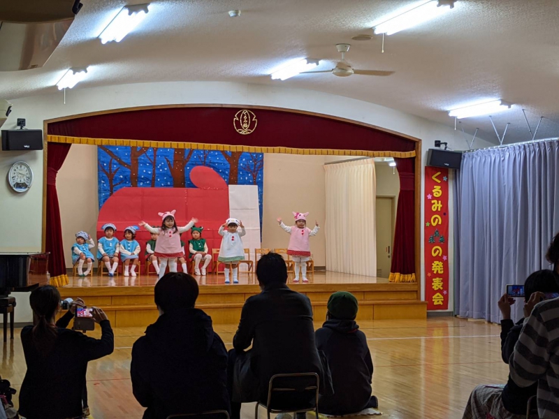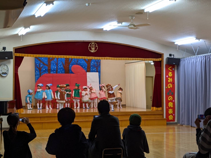 さて、土曜日には、『くるみの森の発表会🎄(満3歳児・3歳児2クラス・4歳児)』を実施しました。