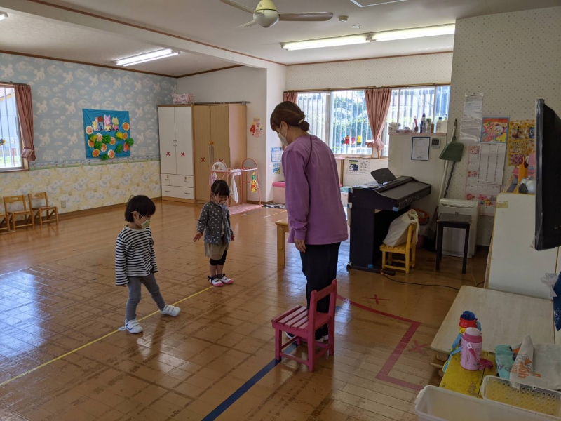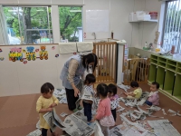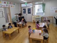 集団生活に向けてのルールやお約束事等も、段階的に学ぶ状況(慣らし保育期間)でもあり・・・