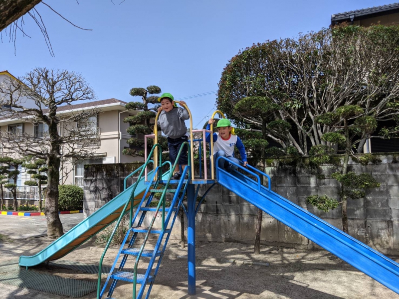 園庭の桜は、まだ満開ではありませんが・・・ ※「22日の熊本県の標本木は3〜4分咲きで、24日〜27日ごろ満開となる見込み」のようです。 澄み切った青空と桜の木の下で・・・ 元気に園庭を駆け回る、くるみっこの姿は変わりません。 本日も、各自がとっても楽しそうに遊びまわっている姿がありました。。。👀