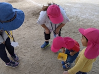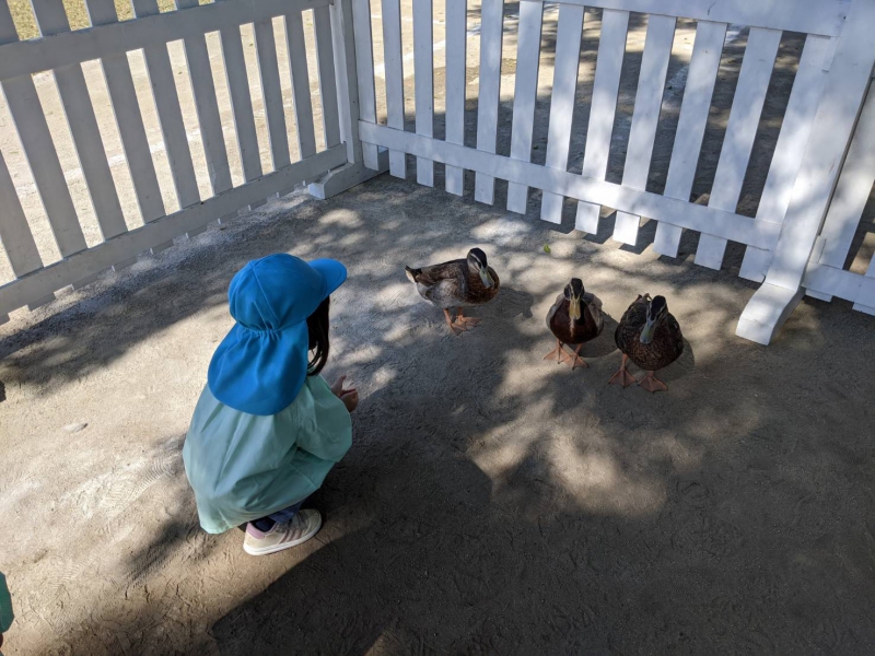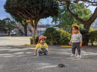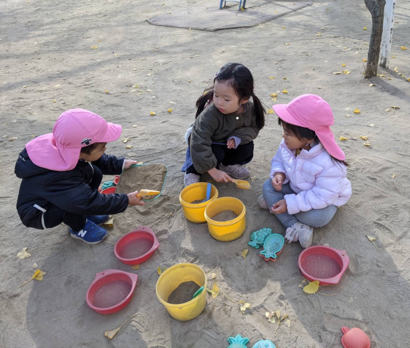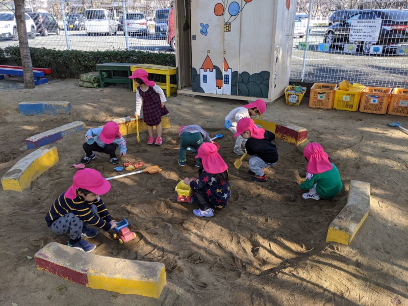 本日、園庭では・・・ 3号認定(0〜2歳児)の子どもたちが、先生たちと遊んでいました。