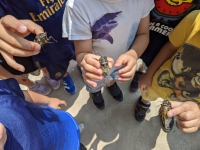 虫をジッと眺める子ども。 素手で捕まえる子ども。 虫の居場所を、一生懸命指をさして教える子ども。 ひたすら飛んでいる虫を追いかける子ども。 虫を見つけたら、とにかく駆け足で先生を探し、呼んでくる子ども。 死んでいる虫を大切に持ち、観察する子ども。 触りたいけれど、触れずに立ち止まっている子ども。 友だちと話し合い、虫の居場所を探索する子どもたち。