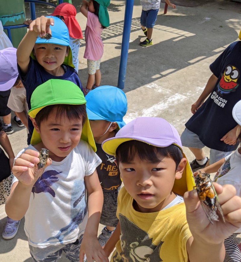 先日、園庭で『虫取り』をしました。 「セミ」・「トンボ」・「ちょうちょ」・「かまきり」等、いろいろな虫たちが園庭に集まってきます。