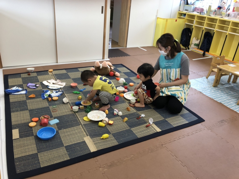 各保育室を、数回覗き込みましたが・・・ お友だちや先生と楽しく遊ぶ。 シール帳に、シールを一生懸命貼る。 先生の話に、しっかりと耳を傾ける。 お友だちの分でしょうか。椅子を2つ同時に、一生懸命運ぶ。 登園時に涙が見られたが、時間の経過とともに落ち着く。 夢中になって、一人遊び。 先生のサポートを受けながら、一生懸命パンツをはこうとする。 最後まで、涙が止まらないお友だちも、先生の寄り添いにより、泣き声が小さくなりながら、落ち着こうとする。 (預かり保育利用児が)元気に、園庭を走り回る。 様々なくるみっこの姿が、いろいろな場所で展開していました。