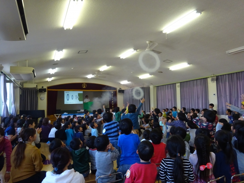 昨日、保護者の皆様のご支援により『お楽しみ会』が開催されました。 今回は、九州サイエンスラボから、「かず先生」がやって来ました。 子どもたちの夢を育てるサイエンスショーの始まりです。 子どもたちも、いつもと違う空間に、興味津々です。 かず先生が繰り出す、目の前で起こる科学の面白さが伝わる様々な出来事を、全身で体感していました。 あっという間にその世界に入り込み、想像力を膨らませ・・・ 「何でだろう?」・「どうしてだろう?」・「○○じゃないかな?」・「□□に決まってる!」等、各自の頭の中が刺激され、不思議・想像・疑問等、豊かに広がっていたと思います。