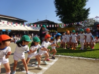 ケガの防止等も踏まえ、各自の走る距離を変え、一斉にスタートしました。 思い思いに、子どもたちは駆け出します。 中々前に進まない子ども・・・(笑) 上手に前のお友だちを追い抜く等、元気に走り、元居た場所に戻っていました。