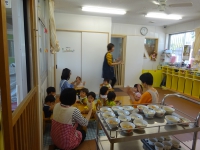 さて、そんな先輩くるみっこへの憧れも含め、未来のくるみっこが、期待感を膨らませながら、土曜日の『諸道具説明会及び体験保育』に参加しました。