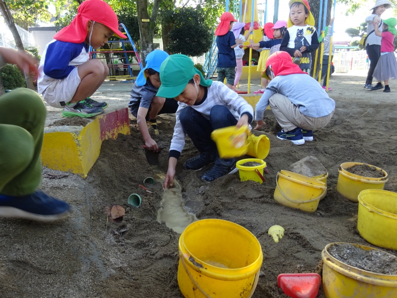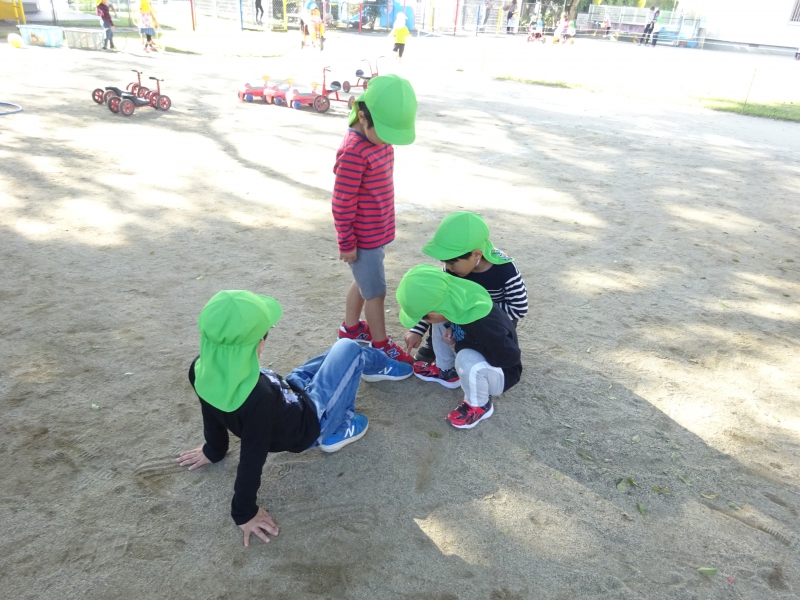 日中は、お日様もあり、過ごしやすい季節でもあります。 園庭では、子どもたちが夢中空間をお友だちや先生たちと満喫している姿があります。