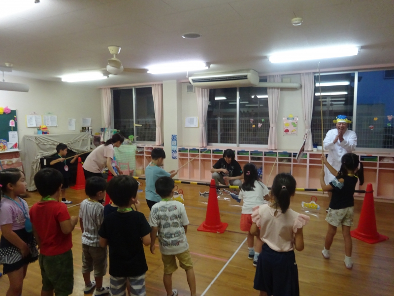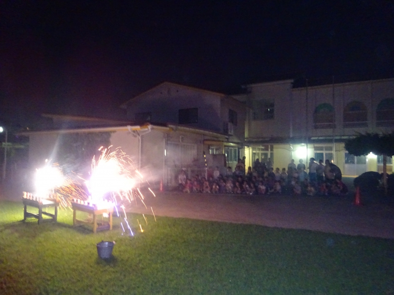 「宝物(花火)」をみんなでゲットし、園庭で吹上花火を観賞しました。