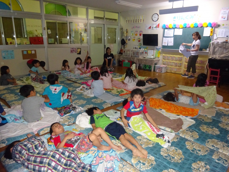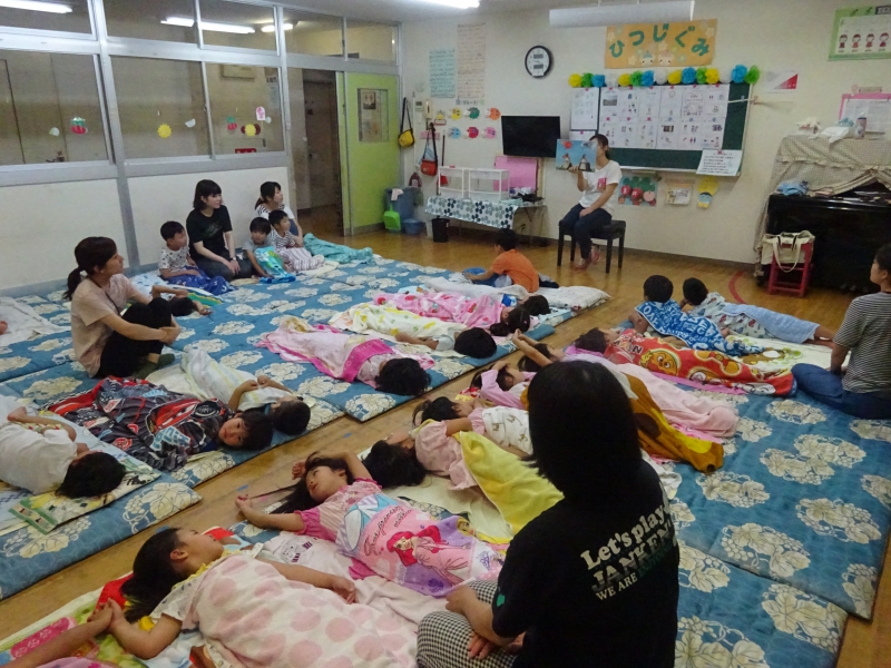 「あのね。一人で泊ったことない。だけど、一人で寝る練習を家でしてた」 「俺は、お祖母ちゃんの家に泊ったことがある」 「私は、前にお姉ちゃんがくるみ幼稚園だったから、お泊まり保育のことを聞いたので大丈夫!!」 「ちょっと、怖い。。。」