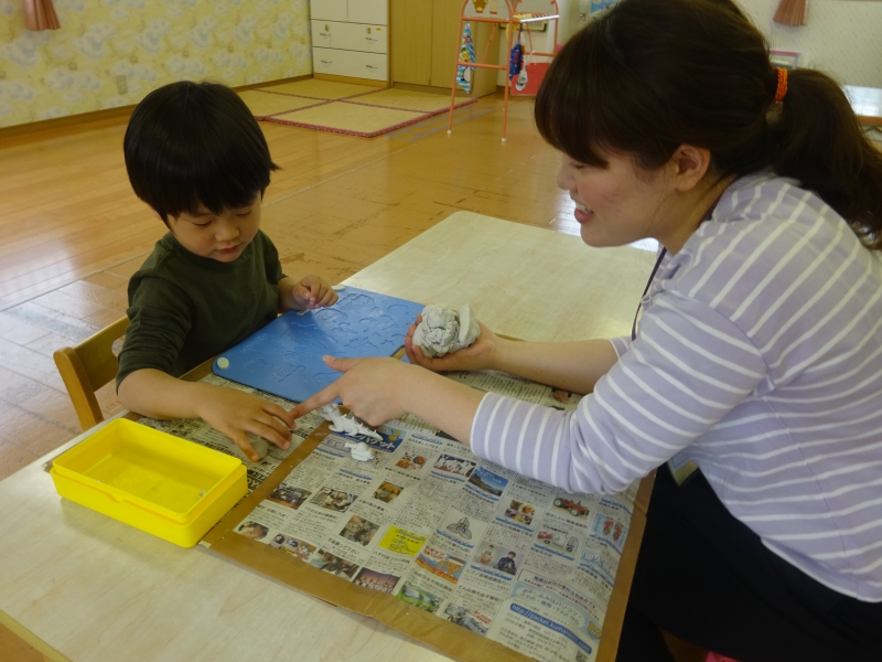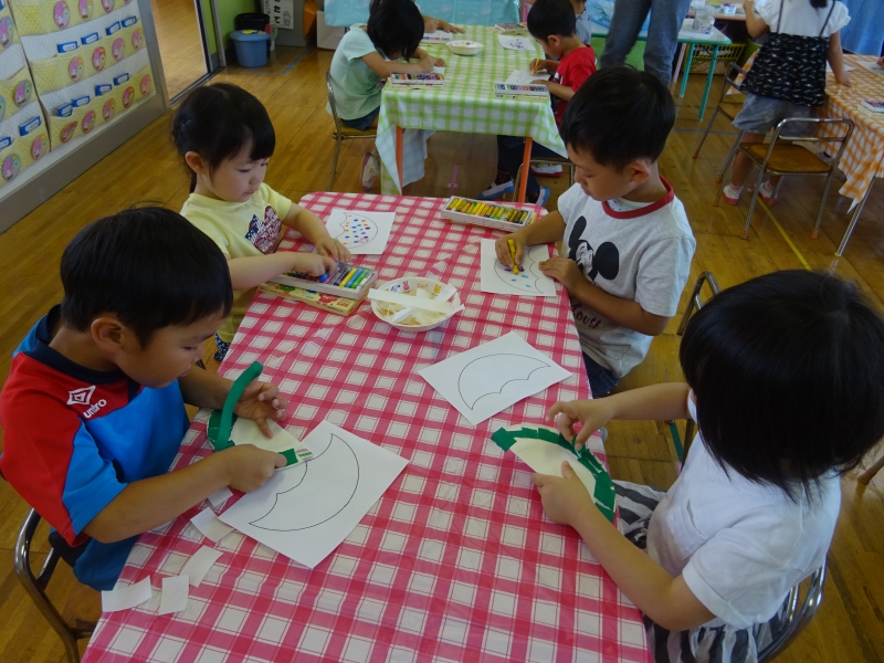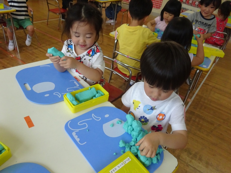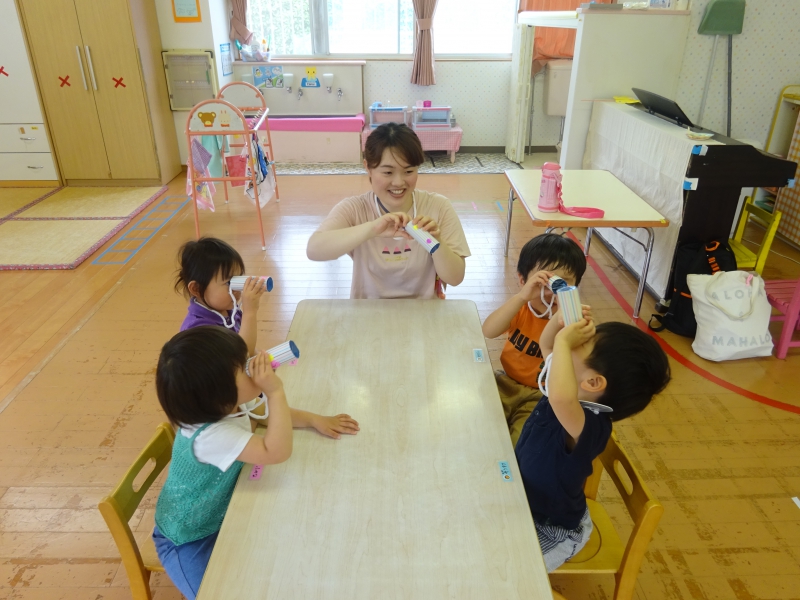 さて、満3歳児クラスでは、楽しそうに製作に取り組んでいる姿がありました。 新たな友だちも増え、クラスもより活気が出来てきました。