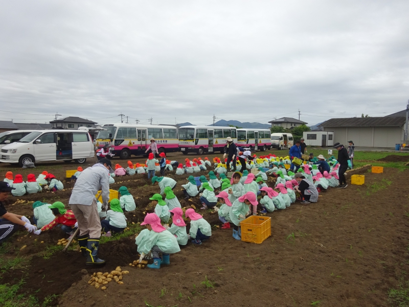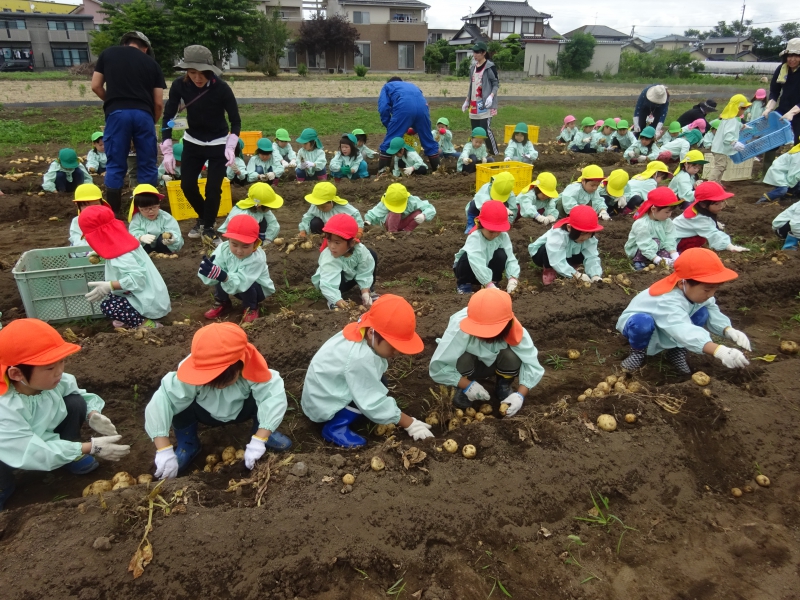 やっぱり、みんなで活動すると・・・ 初めてのことに対する不安感も少しずつほぐれます。 ※中には、「じゃがいも堀りに行って、もし迷子になったら・・・」と不安になっていたお友だちもいたようですが、無事に楽しく園に到着でき、一安心ですね。 また、共に活動することで、楽しさも数倍になります。