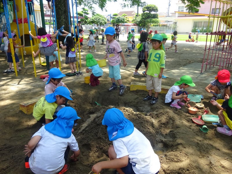 さて、園庭では、くるみっこが暑さに負けず、伸び伸びと遊びまわっている姿があります。 子どもが夢中になって走り回ったり・話し込んだり・何かに没頭している姿は、心の豊かさを広げている瞬間でもあり、とても微笑ましいものです。