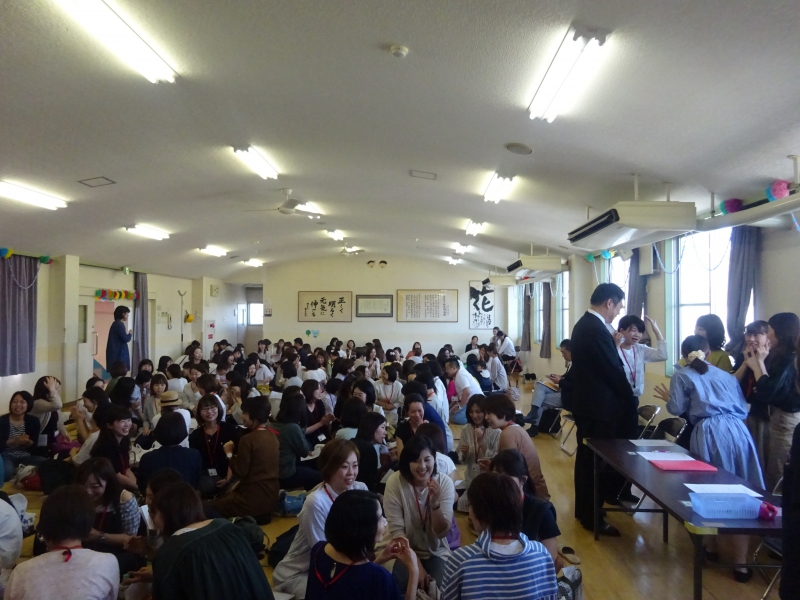 園長挨拶時に、『アイスブレイク』を行いました。 グループになって、触れ合いました。 最初は、互いの緊張感が伝わってきましたが・・・ 徐々に笑顔が溢れていきました。