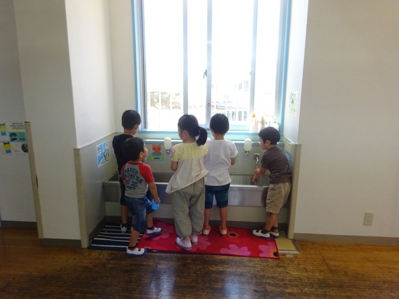 お片づけの際に、最後まで自分の出来る範囲で、自分の遊んでいた遊具以外も含め、一生懸命片づける子ども。 中には、お集まりが始まっても、丁寧に三輪車をきれいに並べたり、砂で汚れたバケツやスコップを丁寧に洗う子ども。 一方で、片付けよりも遊びに夢中になってしまい、虫取りやシーソーで遊び込んでしまう子ども。