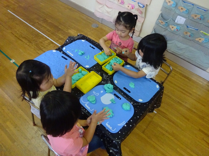 園庭では、「かけっこ」・「写真撮影」・「お散歩」 室内では、「粘土」・「ブロック遊び」等 様々な場所で・・・ 様々な遊びや活動が展開していました。 伸び伸びと、活発に、楽しく、元気に活動している姿がありました。