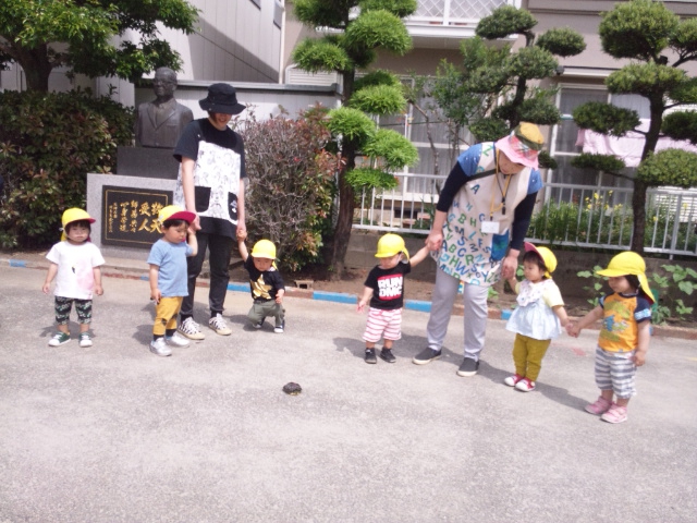 2歳児のAくんが・・・ 『カメさん。こんにちは!』と・・・ 優しく挨拶をしていました。
