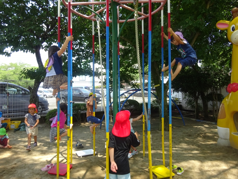 今日は、暑い一日となりました。 吹く風は、時に心地良さを感じる場面もありましたが・・・ やはり、暑い!! くるみっこが、汗いっぱいになって、遊ぶ姿がありました。。。