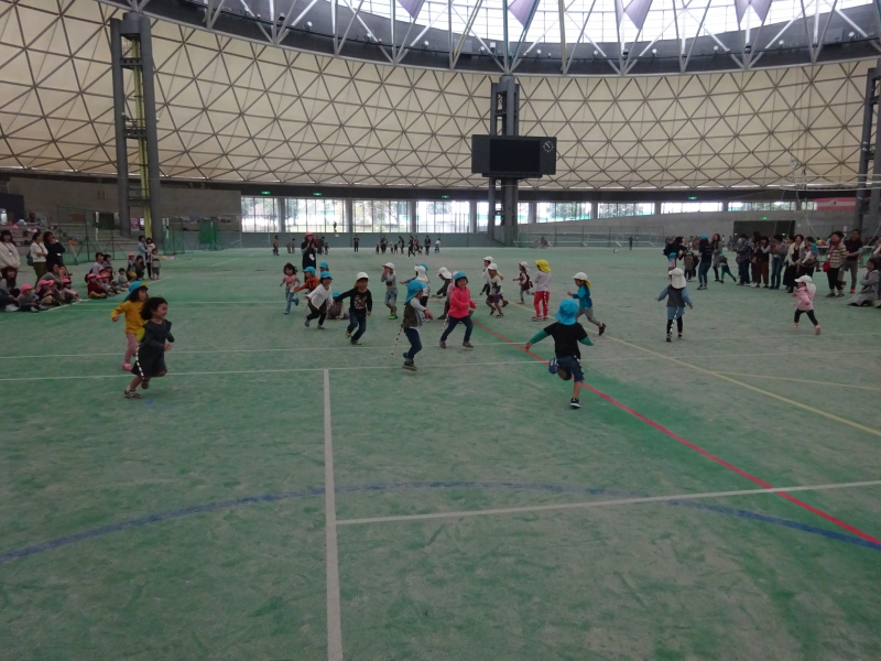 その後、みんなで「体操」をしたり・・・ 「ふれあい遊び」を通して、大好きな人たちとスキンシップを楽しみ・・・ 玉入れ競争では、互いに競い合ったり 等 笑顔が溢れる中で、活動に参加してくれました。