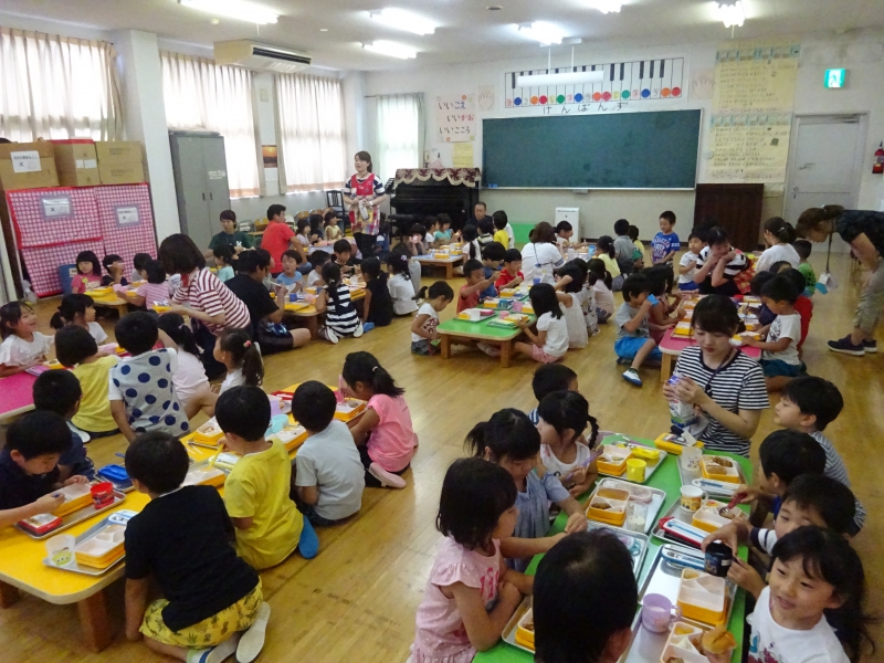 その後、「お泊まり保育の歌」をみんなで、楽しく、元気よく歌いました。
