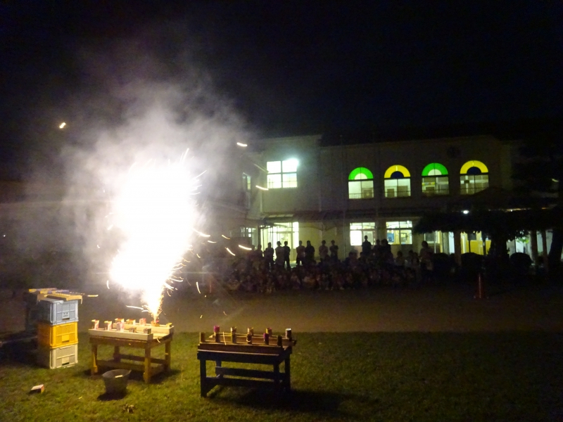 宝物の花火を観賞する為に、みんなで園庭に集まりました。