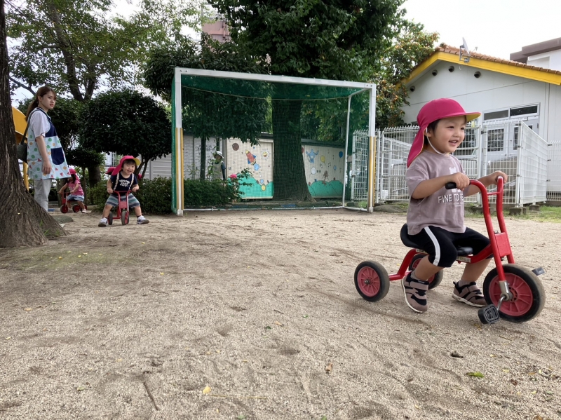 今日も、子どもたちが様々な場所や場面で躍動していました👀 『4歳児かけっこ練習』では、新入園児も含め、初めてや久しぶりの園庭でのかけっこです。 子どもたちが笑顔いっぱいで整列し、スターターの合図と共に、勢いよく走り出す姿がありました。その力強い踏み出しに、成長を感じる瞬間でもありました。 スピードの速さに関わらず、夢中になって走る子ども。 最後まで諦めない子ども。 お友だちに抜かれ泣き出し、一度は立ち止まるが、先生たちのフォローもあり、再度ゴールを目指す子ども。 マイペースで、自身を実況中継(笑)しながら、ゴール目指す子ども。 途中で靴が脱げても、走り続けようとする子ども。 力いっぱいゴールテープを駆け抜ける子ども。