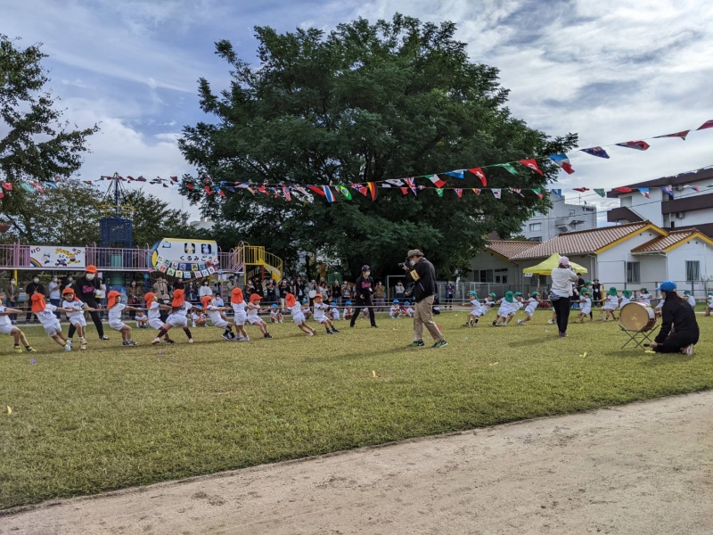 そんなお友だちの走りに、自然と他児の応援の声も大きくなります。 先生たちもその空間に入り込み、子どもたちへ大きな声でエールを送り続けます。 (子どもたちの姿や応援出来るその瞬間に、嬉しさが同時に込み上げてきました)