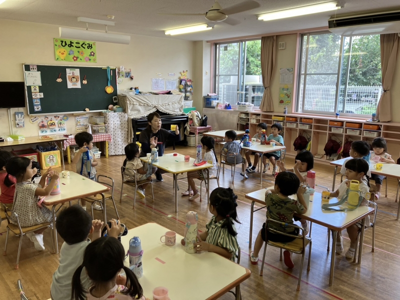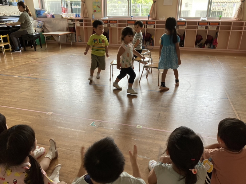 さて、暑さを出来る限り回避しながら、園庭や室内で様々な活動や運動会練習等、子どもたちが夢中になっている姿がありました。