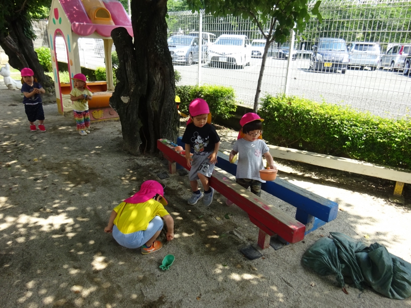 「砂場」・「草花」・「水回り」・「空」・「昆虫」・「音」・「言葉」や「行動」等々・・・ 何でも心が動くと・・・ 何でも夢中になり・・・ その世界に入り込みます。