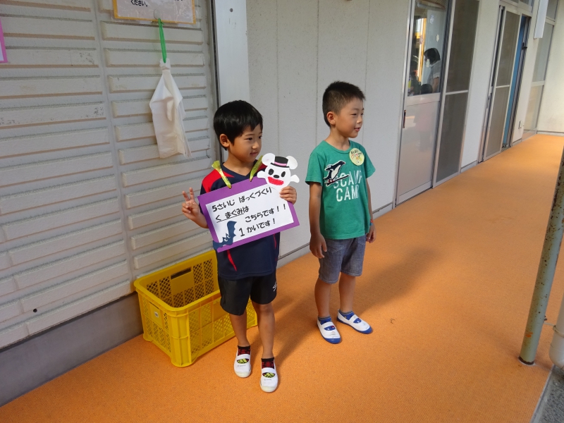 ≪平成30年度入園願書受付開始日(1号認定対象):一般枠待機状況≫ 下記の方々が、既に待機中です。 ・満3歳児(5名) ・3歳児(5名) ※現在、寒さ対策として、保育室内(通園バス駐車場横くま組)に移動し、待機して頂いています。 |