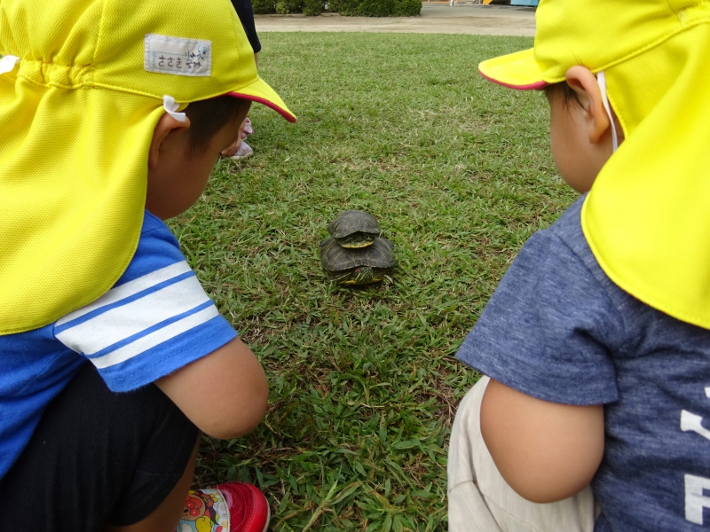 朝から、園庭には、たくさんのトンボたちが優雅に飛んでいました。 その周りを、くるみっこが、伸び伸びと遊んでいる姿もありました。