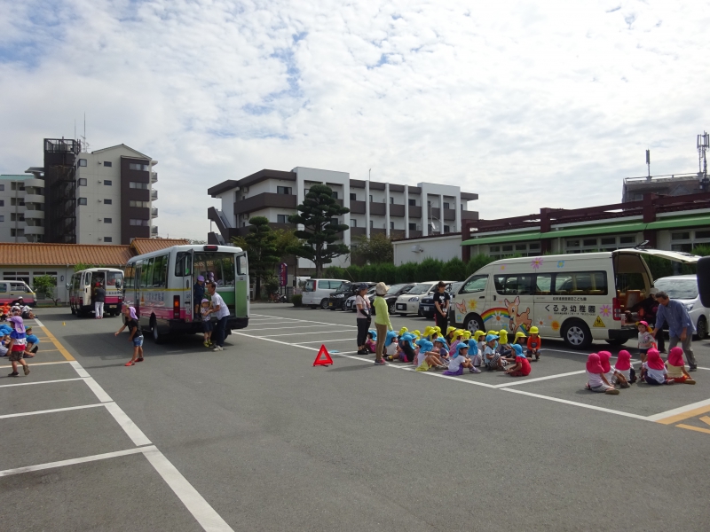 そんな中、満3〜5歳児のくるみっこが、各学年別に『交通指導』を行っていました。