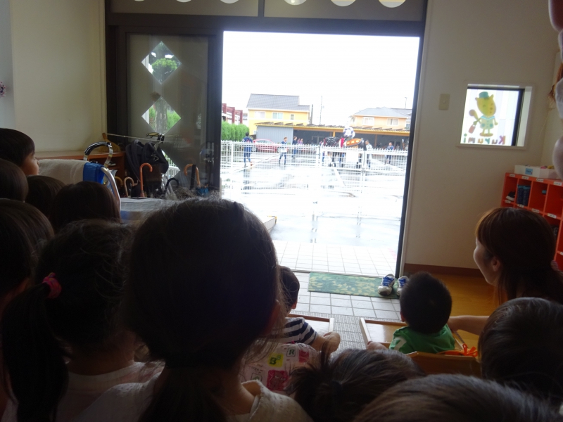 あいにくの雨模様。 そんな中、園舎内で「雨さん!雨さん!!雨が〜降ってきたぁ〜!!!」等、子どもたちの元気な声が聞こえてきます。 お友だちと楽しそうにしている声が、自然と響き渡っています。