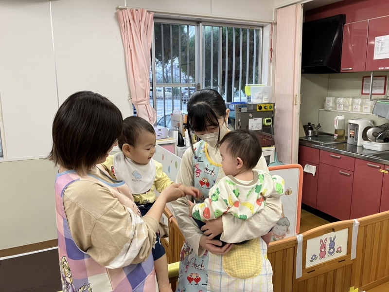 先日、0歳児クラスでの場面も思い出します。 Aちゃんがオモチャで遊んでいました。 その姿をじっと見つめるBくん。 Bくんの右手がそっと伸び・・・オモチャを一つ持っていこうとすると・・・