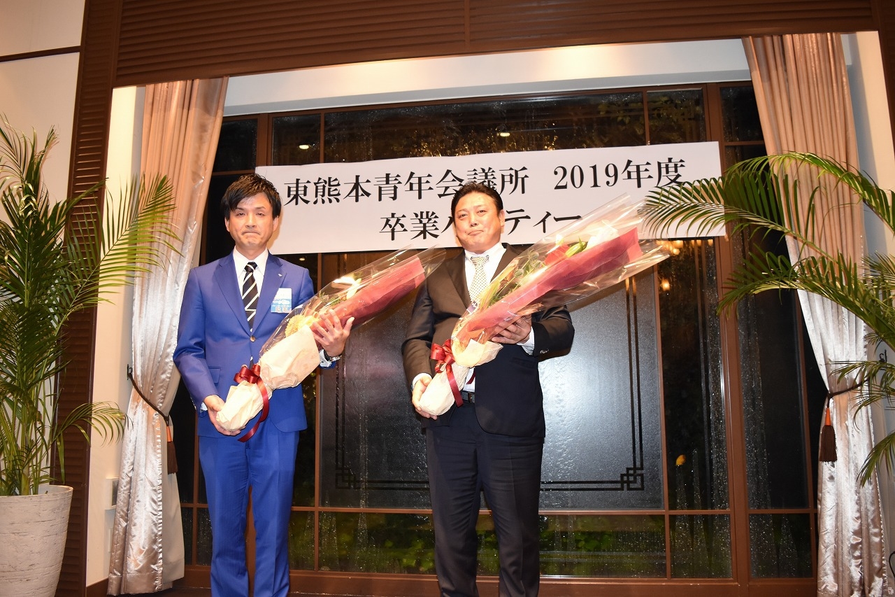 2019年度最後の例会では、「12月例会」と「卒業パーティー」を開催いたしました。 12月例会では、今年の活動をメンバー一人ひとり発表していただきました。 一人ひとりの熱い思いが伝わり最後の例会にふさわしいものになりました。 そして、卒業パーティーでは、本年度をもって卒業される「今村宣幸」君と「末吉勝」君のこれまでの活動をまとめた映像やこれまでのJCライフで所縁のある方からお祝いのメッセージやサプライズで登場していただいたり、家族を招いていたりと2人にとってかけがえのない時間となっていただけのではないかと思います。 ご卒業おめでとうございます。今まで本当にお疲れ様でした(^^)/